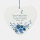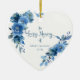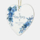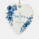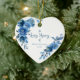 Beautiful heart-shaped Christmas ornament designed in blue and white floral. Personalize with the loved one's name on the front and dates.