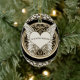I was disappointed with the writing on the ornament. It’s just too small and can barely be seen. Also it was not as obvious on screen that the position of the hole for hanging was centered on person’s forehead. Writing that came with chosen frame is too small and can barely be seen.