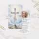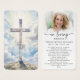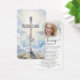 This memorial prayer card design features a prominent Christian cross with a radiant sky background, symbolizing faith, peace and eternal hope. Paired with a soft photo layout and the phrase “In Loving Memory" with name and dates, the design offers a comforting tribute for honoring a loved one’s life and spiritual legacy. The reverse side includes an editable "The Lord’s Prayer," providing words of devotion and reassurance for family and friends during funeral services, memorial gatherings or celebration of life ceremonies. Its small and portable size (3.5x2") makes this keepsake card convenient to carry as a reminder of their life and spirit. Personalization makes these cards unique.