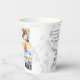 Memorial Funeral Paper Cups ~ Modern white marble 3 photo collage, for funeral service and celebration of life events.