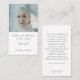Honor a cherished life in loving memory with this elegant prayer card featuring classic script typography, elegant floral details, and space for a personal photo, name, with a heartfelt bereavement verse. A timeless memorial keepsake for funerals, celebration of life services, and remembrance gatherings, offering comfort and sympathy during times of grief and loss.You can find more elegant prayer cards in the Elegant Memorial Keepsake Prayer Card collection in The Gathering Designs store.