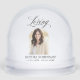 Personalize this simple elegant funeral memorial Snow Globe with the name and dates of your loved one. Modern elegant script typography on a clean white background. Perfect addition to your funeral memorial remembrance event and a keepsake for all your family and friends who came to mourn with you. Easy to customize photo and text. Our heartfelt condolences on your loss.