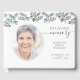 Beautiful watercolor sage and blue-green eucalyptus greenery memorial guest book with a photo in remembrance of your loved one. Titled IN LOVING MEMORY in modern handwritten script typography and personalized with name and dates. PHOTO TIP: For fastest/best results, choose a photo with the subject in the middle and/or pre-crop it to a vertical rectangle shape BEFORE uploading and use the CHANGE tab next to the sample photo in the PERSONALIZE section. Contact the designer via Zazzle Chat or makeitaboutyoustore@gmail.com if you'd like this design modified.
