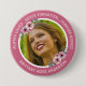 A beautiful floral funeral memorial button personalized with a photo of your loved one, a border that can be changed to any color, with white typography that reads "Always Loved...Never Forgotten...Forever Missed", and their name. Decorated with a pink watercolor floral border framing the photograph. A keepsake or memorabilia for friends and family to wear at the funeral/wake.