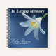 The cover is decorated with a Beautiful white Lily on a blue background to celebrate the life of your loved one. You can personalise the name and dates on the cover.