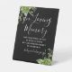 In Loving Memory Greenery Black And White Wedding Pedestal Sign