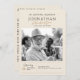 This modern funeral program design features a clean, minimalist layout with a soft ivory background, elegant serif fonts, and warm gold handwritten script accents for a timeless and respectful look. A large photo is showcased alongside personalized memorial details, setting a heartfelt tone for the service. On the back, the layout includes space for the order of service, making it easy to create a meaningful and well-structured tribute. This tasteful and contemporary design offers a beautiful way to celebrate a loved one’s life with grace and dignity.