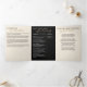 This elegant funeral program design features a modern and heartfelt layout ideal for commemorating a loved one's life. The design combines a timeless black and ivory colour palette with delicate script and serif typography, creating a sophisticated and respectful tone. Two full colour photos provide space for cherished memories, while custom headings and sections for an obituary, order of service, acknowledgments, and a poem or quote, allow full personalization of the service details. Gold accents and elegant handwritten script add warmth and intimacy to the layout. This custom memorial template is perfect for honouring a life with dignity and grace, making it a meaningful keepsake for family and friends.