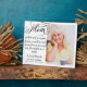 Modern, elegant photo memorial plaque. Design features single photo, typography script ''mom'' in elegant handwritten lettering, short text, name and dates. Perfect memorial, tribute to a loved one who has passed away.