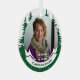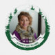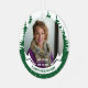 Modern In Loving Memory Photo ornament. Design featuring single photo, pine trees background, name and dates on the front. Personalize with your message, poem, quote etc on the back. Perfect memorial, tribute to a loved one who has passed away.