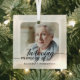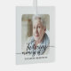 Modern In Loving Memory Photo ornament. Design featuring single photo, in loving memory script and name on the front. Personalize with your message, poem, quote etc on the back. Perfect memorial, tribute to a loved one who has passed away.