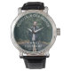 Personalized remembrance watch featuring a photo of the person you have lost, their name, birth and death dates, and the words "forever in our hearts".
