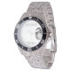 Has heft and feel of expensive stainless steel quartz watches. Good band with safety catch. I removed links, which is easy because engraved arrows show direction to push the linking pins. As always by this seller, the image (a railroad logo) is a perfect reproduction of my emailed image, and is precisely spaced and aligned.