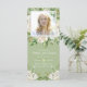 Celebrate the cherished memories and honour the life of your loved one with our elegant celebration of life funeral thank you card. Set against a serene green backdrop, delicate white roses and lush green foliage create a tranquil atmosphere, symbolizing eternal love and remembrance.