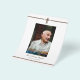 To customize... Click on the sample image thumbnail above right under the 'Personalize It' heading.... to search your own computer files to replace with your own portrait (template suits best, a vertical 6x4 standard photograph).