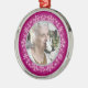 The photo on this "in memory of" Christmas ornament is easy to customize. The pink glitter look snowflake design with the silver frame makes this a pretty and elegant memorial Christmas ornament. These ornaments can be engraved on the back when you receive them! To change the photo use the personalize options. For more extensive changes to the ornament, including changing picture size and/or picture placement, use the customize it option.