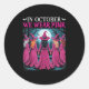 In October We Wear Nk Witch Halloween Breast Cance Classic Round Sticker