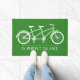 Lovely green doormat printed with a white tandem bike and the words In Perfect Balance.