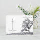 This memorial card has a dark modern and elegant design with a white border around the front and back. In silent mourning - tree on a meadow.