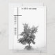 This memorial card has a dark modern and elegant design with a white border around the front and back. In silent mourning - tree on a meadow.