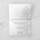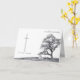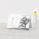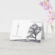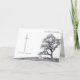 This memorial card has a dark modern and elegant design with a white border around the front and back. In silent mourning - tree on a meadow.
