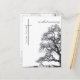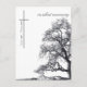 This memorial card has a dark modern and elegant design with a white border around the front and back. In silent mourning - tree on a meadow.