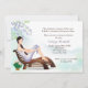 A lovely, feminine, retirement party invitation for any woman. It features a tranquil patio scene with flowers, a lounge chair and a woman resting on it. (vm)
