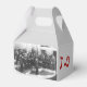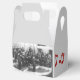 Grey gable-style favour box with an image of a Big Band orchestra on the front, and the title of one of Glenn Miller’s greatest tunes, "In the Mood." on red music bars on the back. The sides have two red music notes. See the entire Patriotic 40s Favour Box collection in the PARTY FAVORS section.