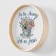 In The Morning Give Me Jesus round wall clock in blue and white featuring a teacup full of beautiful blossoms. Wake up your day with a prayer and a praise. This Christian themed clock is sure to be a pleasant way to start your day.