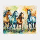 This image shows a herd of colorful horses in the pasture, blending whimsical drawing and abstract art elements in a palette of complementary colors.