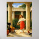 Behind her, lush greenery spills into the space, softening the strict lines of the temple like setting and creating a peaceful contrast between nature and stone. Waterhouse’s careful detail in fabric, skin, and light makes the scene feel both intimate and timeless, like a fleeting glimpse of serenity inside an ancient world.