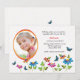 A sweet design for a sweet little girl. The white background has a dainty, dotted, pin stripe and colourful flowers and butterflies. The photo window is oval and double framed. (VM)