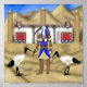 The Ibis was one of the animals sacred to the god Thoth- the god of writing & the moon and here I have painted the god holding a papyrus roll in one hand and a writing instrument in the other and surrounded by the Sacred Ibis. In the background is a temple dedicated to this important deity complete with carved hieroglyphs and images of the Ibis as well as having 3 fully carved Obelisks complete with a golden point on each one. This painting not only captures the importance of Thoth but also gives a glimpse into the beauty of ancient Egypt and their wonderful belief system.