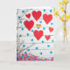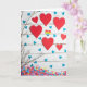 The front design shows a white, plank-style wooden background sprinkled with paper hearts in different sizes and colors. Several large, deep red hearts sit across the upper and middle areas, giving the scene a classic romantic feel ❤️. Smaller blue hearts are scattered between them, and one heart with rainbow stripes stands out as a sweet nod to love that includes everyone 🥰. From the lower left corner, a thin bare branch reaches upward, with a few tiny blue hearts attached like little buds. Along the bottom third, countless mini hearts in pink, yellow, orange, and blue gather like confetti, making the whole layout feel celebratory and close. The greeting text sits near the top in neat, flowing red lettering that’s easy to read against the white wood. It’s a gentle way to share Valentine’s Day sentiments.