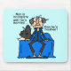 Gus and Stella in bed with Gus awake and thinking about marriage. Funny marriage attitude T-shirts, mugs, cards, pillows, tote bags, keychains, magnets, mousepads, and more with Gus saying "Man is incomplete unitl he's married...then he's finished!".
