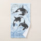 Incroyable aquarelle orques art de nager et de sauter orques et une petite orque avec des éclaboussures d'eau et des vagues. Personnalisez en changeant le texte ou la personnaliser pour ajouter votre propre touche.