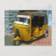Photo de fond d'un pousse-pousse automobile en Inde imprimée sur une carte postale.