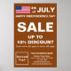 Happy Independence Day! Holiday to celebrate and feel freedom. It is also one of the holidays of the year to advertise your business. Customizable poster with Independence Day Sale, your business name and other information. Poster that you can use as marketing material to attract more customers. Customize it and use it to convince more customers to buy your products or clients to like your services this Independence Day. Design colours and shape are light brown and white texts on brown background and portrait format rectangle shape. Contents are flag, 4th of July, Happy Independence Day, sale, percent discount that you will offer, sale dates, your business name, logo, address, phone number, e-mail and website or your social media page. Please check the appearance after uploading logo and typing texts. If the appearance is pleasing to you, you can place your order now. If you need to resize and move the logo and texts to fit on this poster or on other appropriate size, shape and style that you will choose, please change in the design tool. You can also make other changes in the design tool according to the appearance of this poster that you prefer such as changing the background colour, font colour and font style. Happy Independence Day! Feel the freedom! Wishing you more sales this holiday.