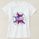 T-shirt with my red, white and blue design of the American Flag surrounded by starts. Text says "Happy July 4th!"