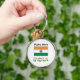 Personalize this round, metal keychain with your name, or create a customized gift. Design features the Indian Flag with the word INDIA, below, in the colours of the flag. Celebrate Indian holidays or remember your travel to India.