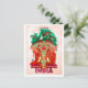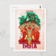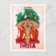 India, red elephant, vintage travel postcard