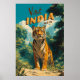 India Tiger Vintage Travel Poster