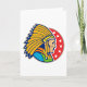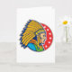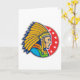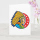 A wonderful design of an american indian chief. This design features just the head in full indian chief headdress and looks really cool. The chief is set on a red background that has some starts on it. A great design of an indian chief that looks great on these greeting cards