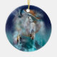 Indian dreamcatcher and ethnic tribal head wolf ceramic ornament