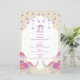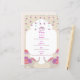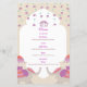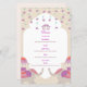 This enchanting wedding menu blends cultural motifs with a modern aesthetic, creating a design that is both traditional and contemporary. The invitation features a soft beige background with delicate floral patterns, symbolizing elegance and harmony. The focal point is the vibrant, decorative elephants, which add a touch of cultural heritage and festivity in purple and orange hues. The ornate arch at the top and whimsical floral garlands create a warm and inviting atmosphere. The script font for the names adds elegance, while the classic serif font provides easy readability for the details. Ideal for a cultural or destination wedding, this invitation captures the essence of love and celebration.