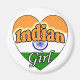Leuke magneet met een hart afgebeeld met de Indische vlag erop. Op de tekst staat: Indian girl De achtergrond is in de kleur wit. Leuk om te geven als cadeau of voor jezelf om te laten zien dat je trots bent om Indisch te zijn. kleuren: oranje, wit en groen.
