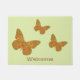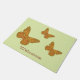 Henna brown lines filled with bright pink, green, yellow, and orange, inspired by the vibrantly coloured saris of India, create mehndi patterns across the wings of this monarch butterfly. Customize the text on this door mat to create a personalized decoration for your entryway.