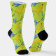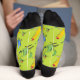 Delight a parrot lover with these green Indian Ringneck parakeet socks in a bright and fun pattern . Green, yellow and blue colour variants dance and play across your feet in a cute cartoon birb style. These lively socks are a wild accessory for the bird owner that is as crazy and rambunctious as the pets they love.