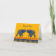 These folded thank you cards are perfect for using as wedding thank you cards. The "Thank You" message on the front can be customized with your own text, and the cards are blank inside so that you can write your own message. They feature a modern Indian style motif with illustrations of jewelled elephants and geometric accents in golden yellow, royal blue and red.