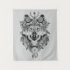 This design features a portrait of a wolf wearing tribal feathers and a dreamcatcher.